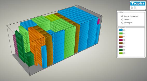 algoritmos de roteirização e arranjo de cargas, o Tropics permite a visualização